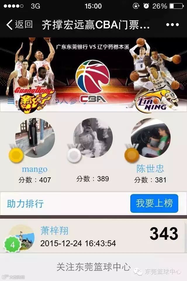 “齐撑宏远,赢CBA门票”我们将免费送出2016年CBA元旦大战门票——1月3日广东VS北京