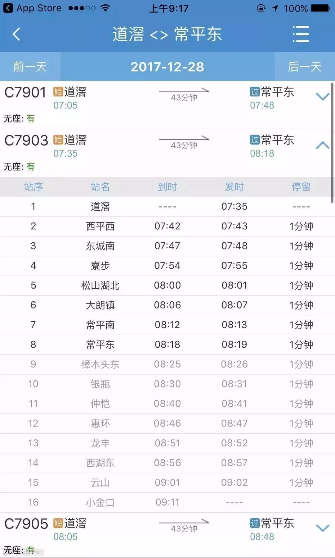 其中常平东-道滘段,每日由常平东往道滘方向首趟列车于7:03发出(惠州市小金口站6:32发车),道滘往常平东方向首趟动车于7:05发出;