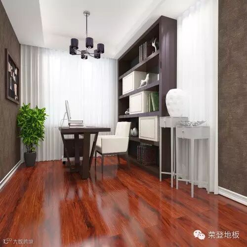 书桌后面的书架,用白色盒子和空余空间的装饰物形成景致,对面墙上可以几幅风景画,一些饰品让整面墙更为生动,地面铺上加静音垫的HS06,宁静致远,再加上一盆绿色植物,空间的自然感就更强烈了。