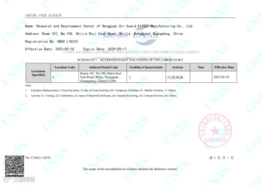参考标准:ISO 11155-1:2001,ISO 16890-2016,GB/T32085.1-2015