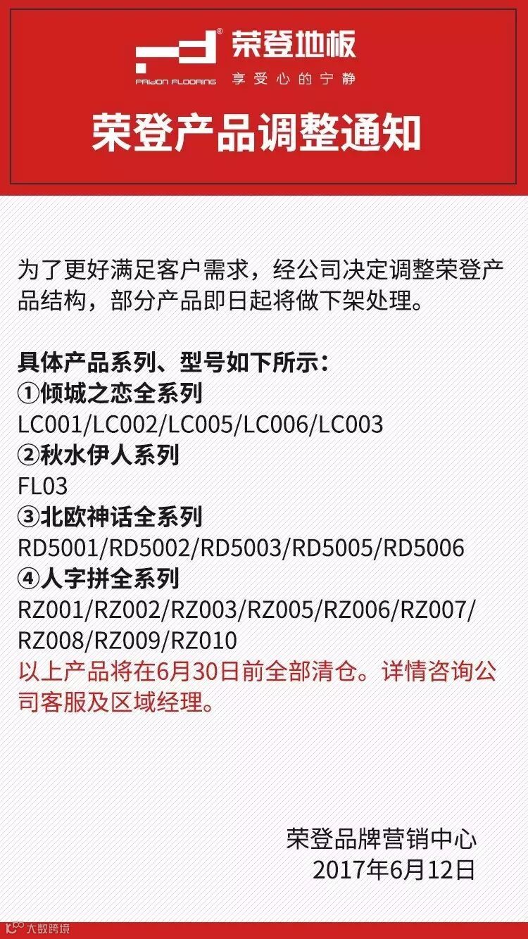重点通知——荣登产品调整通知