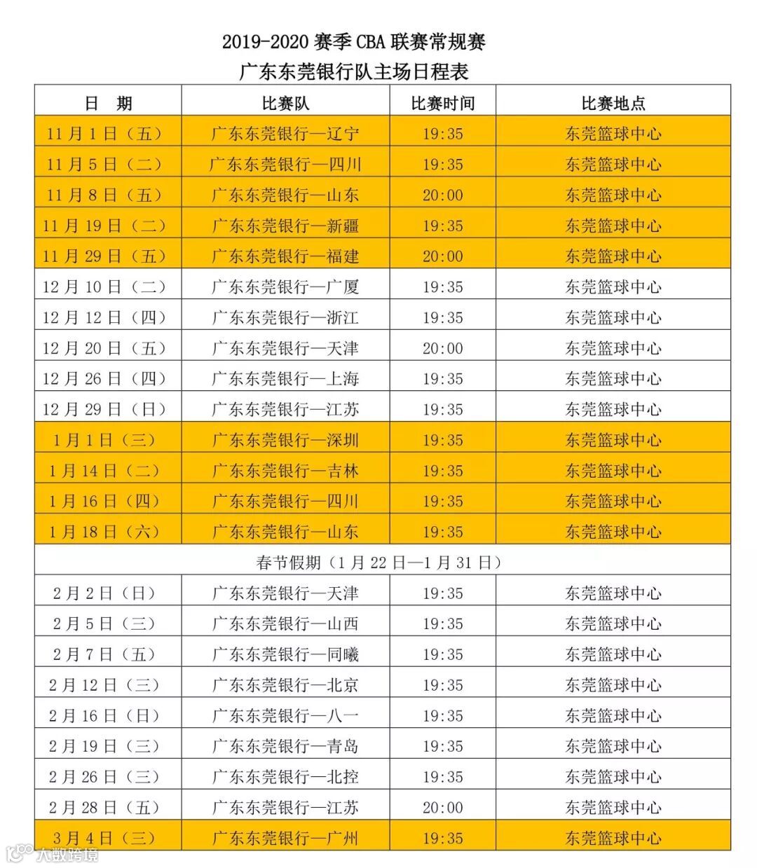 2019-2020赛季CBA联赛将于11月1日拉开大幕,CBA新赛季敢梦敢当,广东东莞银行将以卫冕冠军身份开始新赛季征程。11月1日揭幕战广东东莞银行将在东莞篮球中心迎战2017-2018赛季CBA联赛总冠军辽宁队。