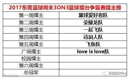 擂台赛经过多周激战已经产生篮球爱好者队、荣耀龙队、一起飞队、诗洞人队、飞鱼队、love is love队等六支擂主,接下来还有10月11日广东科技学院校园擂主和10月15日最后一周周擂主。