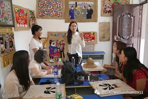 7月12日,孙英丽老师带领西安科技大学,大四视觉传达系30名学生前来我县毛麻绣艺人王桂莲家中,参观学习洛川县非物质文化遗产毛麻绣的历史由来和制作过程。