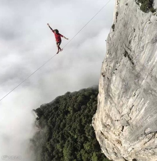 法国 Les Gorges Du Verdon,挑战者 Theo Sanson 走在海拔 980 英尺
