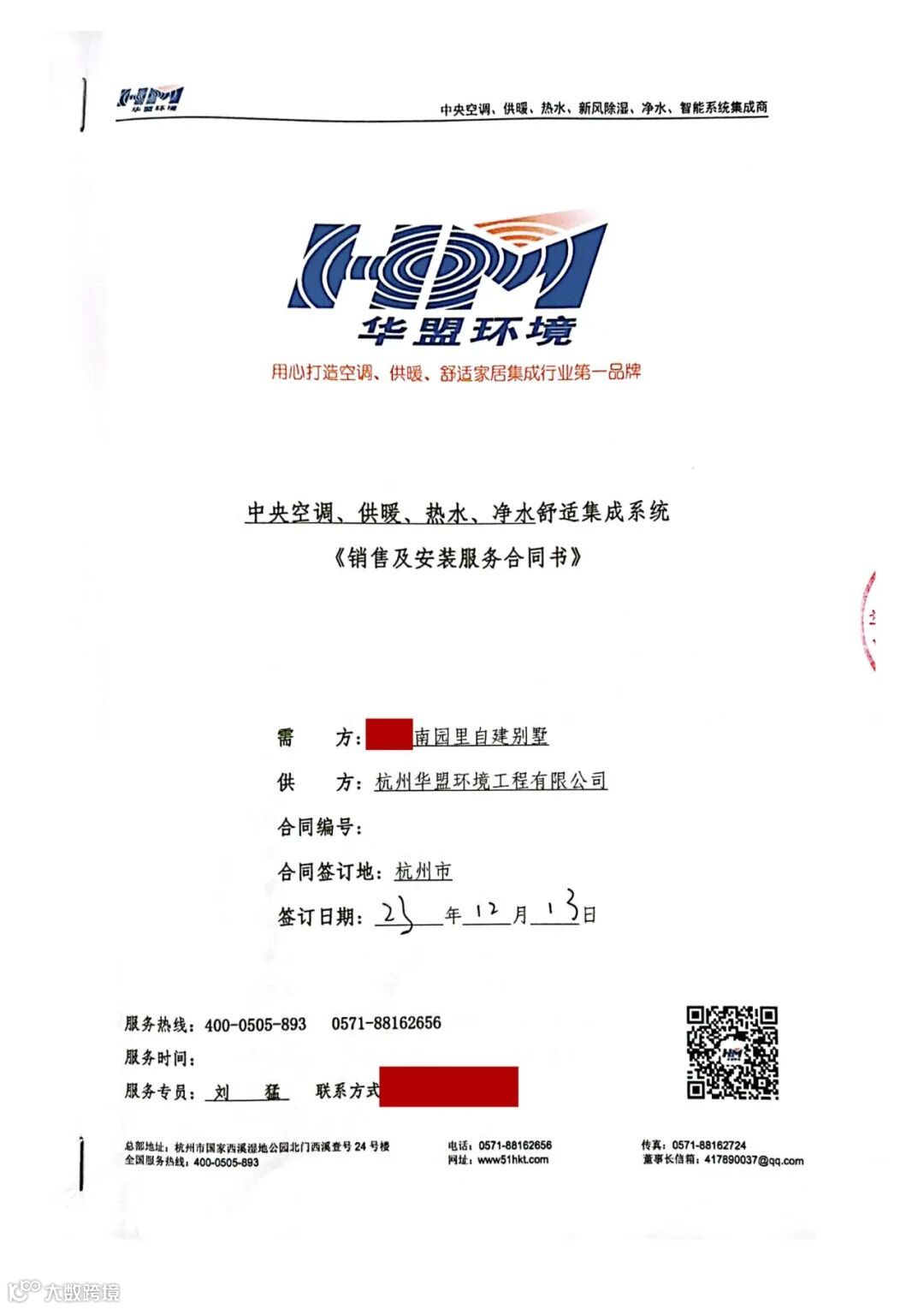 这次老家自建房封顶之后,依然签约了杭州华盟,不为别的,完全是出于信任。因为前两次的安装全家都很满意,无论是服务还是工艺质量。