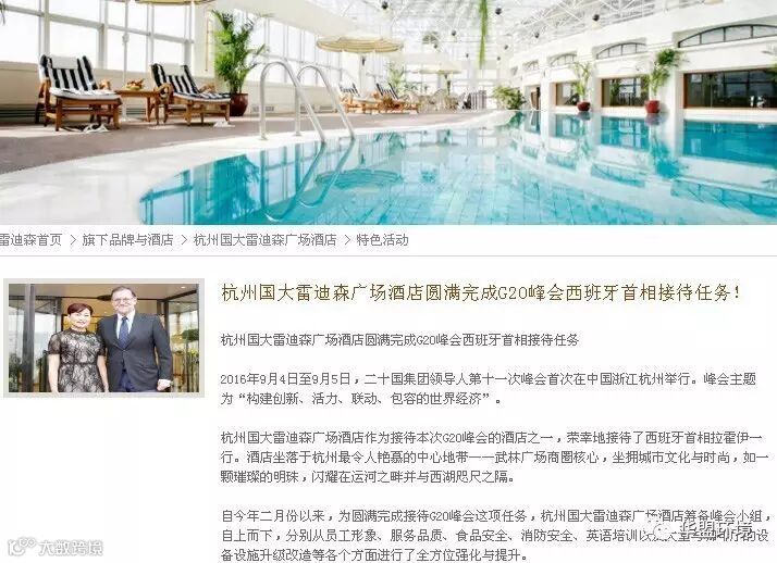 岂止何止是明星,雷迪森大酒店在G20期间接待了西班牙首相!