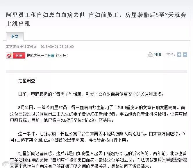 自如房子甲醛超标