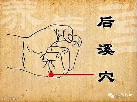 这一系列问题,都出于同一原因。现在,通过一个穴,也就可以全部解决,这个穴就是后溪穴。后溪是小肠经上的一个穴,把手握成拳,掌指关节后横纹的尽头就是该穴。这个穴是奇经八脉的交会穴,通督脉,能泻心火、壮阳气、调颈椎、利眼目、正脊柱。