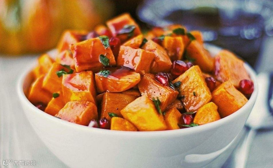 1、去皮洗净的红薯切开,改切成块。