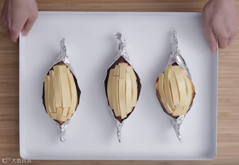 红薯泥100g,奶油芝士10g,盐少许,牛奶少许,芝士片1片(每一根红薯表面铺满即可)