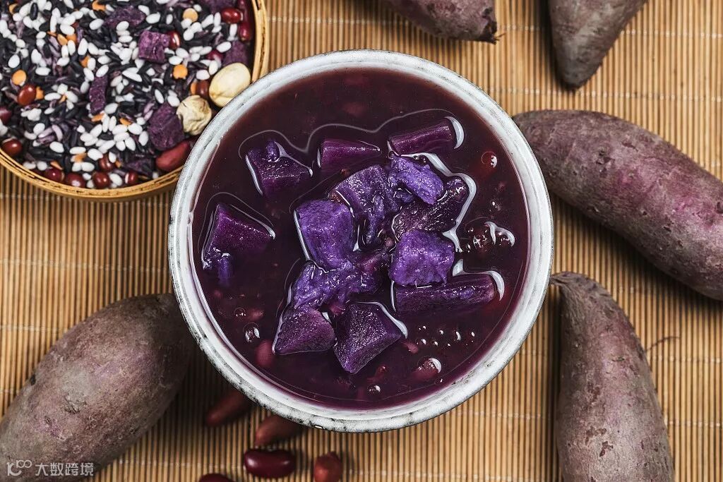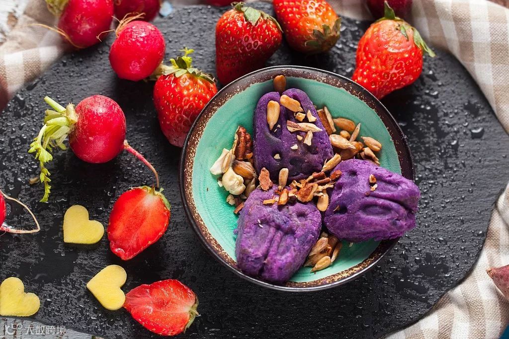 紫薯还有不错的抗衰老作用,改善皮肤肤质,多吃紫薯,就能养颜护肤。另外,它的含糖量较低,是低脂肪、低热能食品,吃再多也不怕发胖。