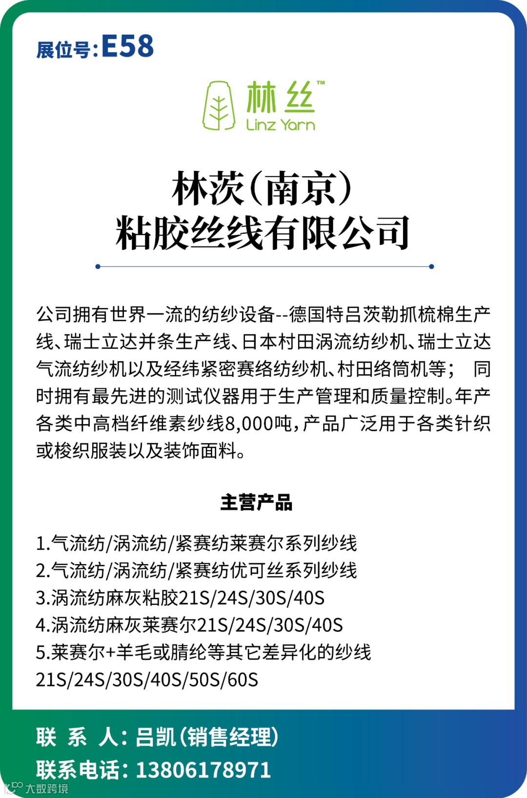 2024春夏纱线展,赛得利携手17家BVY纱线合作伙伴,聚焦纤维、纱线各类产品及应用,共同为纺织市场带来新风向。