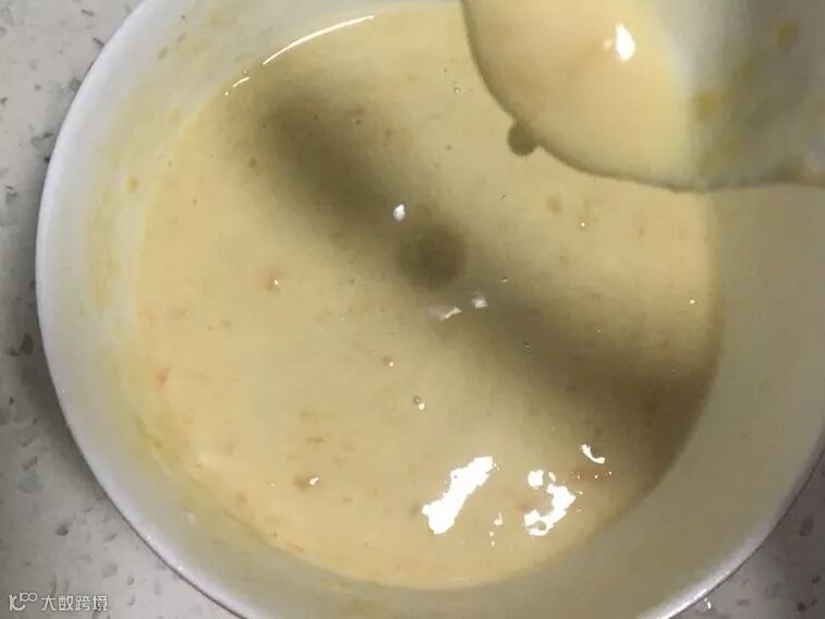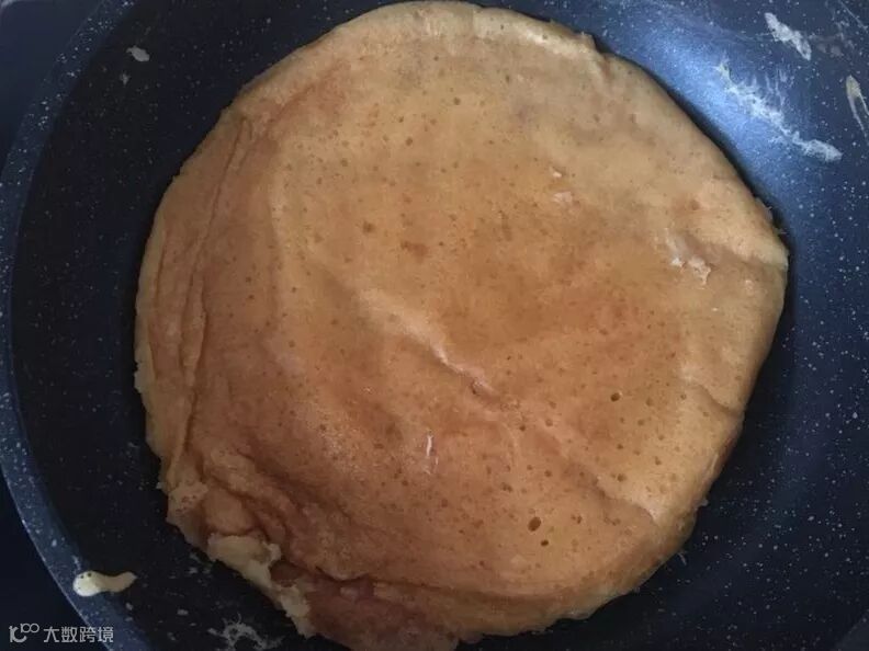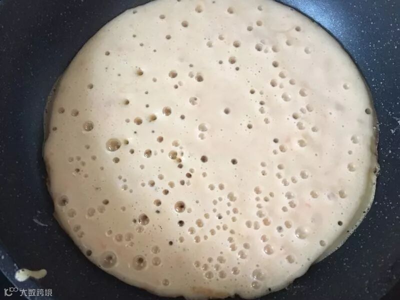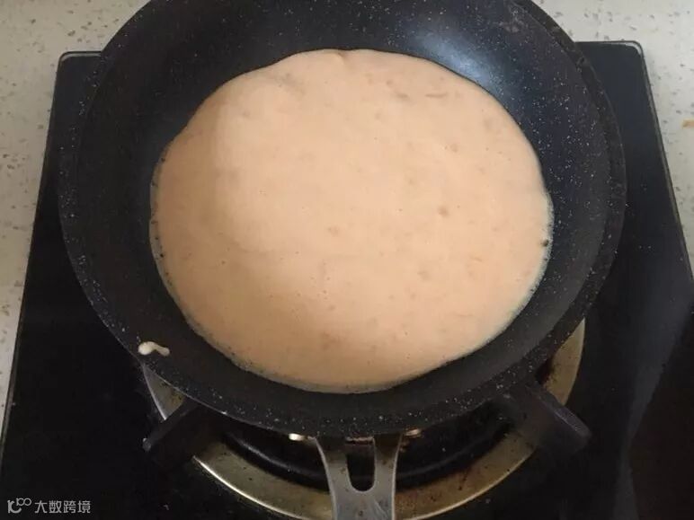 4、不粘锅倒入面糊。
