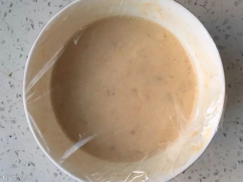 3、盖上保鲜膜扎一个孔,放入冰箱冷藏室低温发酵一晚上,第二天拿出来直接可以使用。