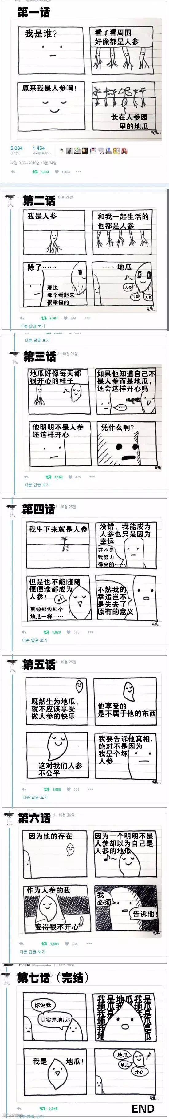 推特上一位来自韩国的插画师(账号@dodaeche_J)画了一幅超有趣的漫画《长在人参园里的地瓜》,这小地瓜的心态,值得我们每个人学习,你们感受感受~