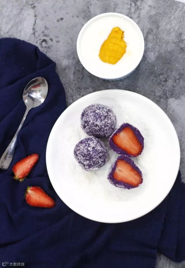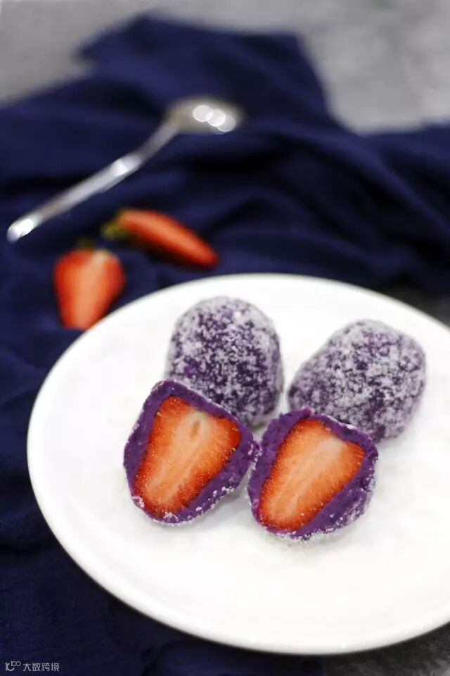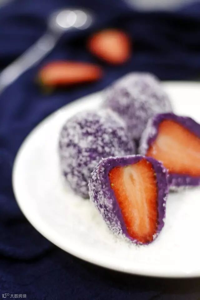 香甜的紫薯大福,一口咬下去却恰到好处:带着淡淡的椰香味,最内一层是依旧光鲜可人、清甜多汁的草莓内心,复合口感的小甜点总给人带来美好的味觉享受。