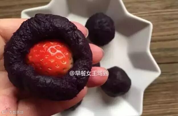 草莓大福也算是甜点界走心派的代表了~ 传统的做法是用糯米皮包裹馅料做成团状,而常用的馅料是豆沙~这次我们试试紫薯版的大福君!用紫薯包裹着草莓,滚上少量的椰丝,比糯米版的大福热量低不少,口感却美味呢~