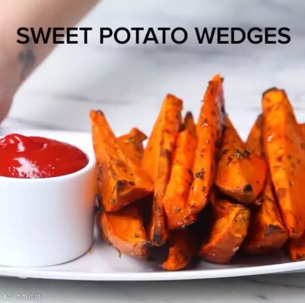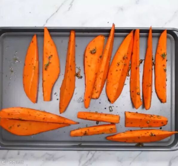 烤好后取出地瓜角,搭配番茄酱食用味道更加!