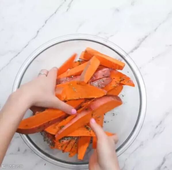 加入盐、黑胡椒、迷迭香、橄榄油,拌匀。