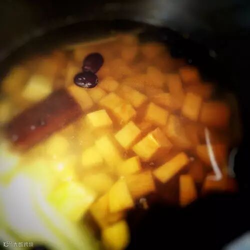 3.放入地瓜块,先用大火煮开,再转小火慢慢煮30分钟左右。