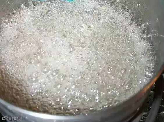3.在锅内加入适量的冰糖和水,溶化冰糖。等到冰糖的颜色变深,浮满起泡。