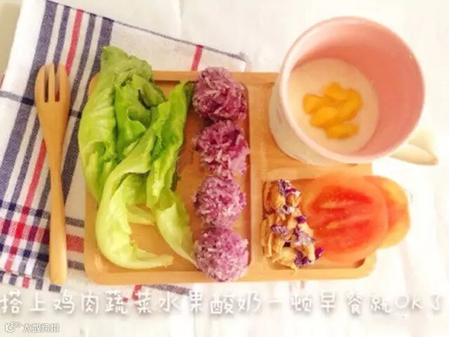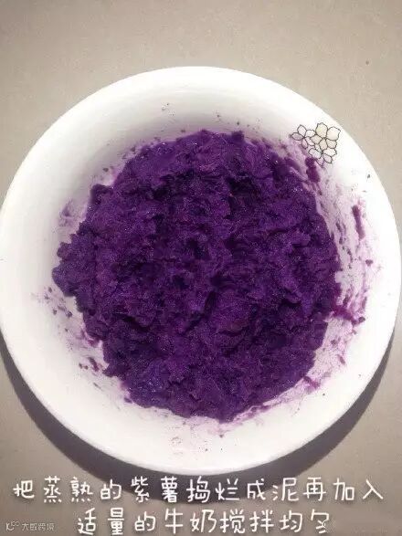 把蒸熟的紫薯加入少许牛奶黏成泥