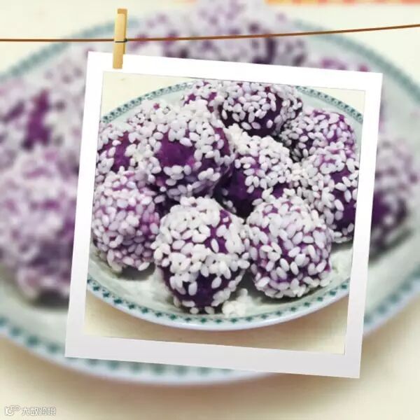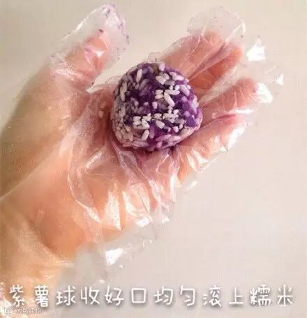 紫薯芒果珍珠球收好口均匀滚上糯米