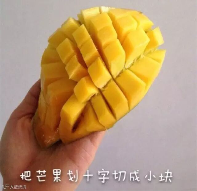 把芒果切成一个个正方形的小块