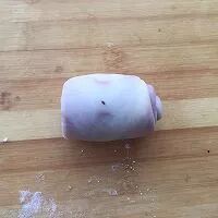 6. 将松弛了一会的前一步的包子状的小团子擀成长方形。