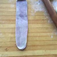 8. 将卷好的条,再竖着擀一次,擀成这样