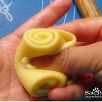 15. 切成均匀的五瓣 用手挤压一下整形 中间刷蛋液 撒点黑芝麻 送入烤箱 140度 15分钟 中层