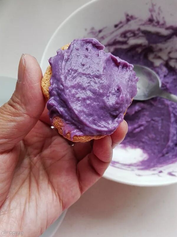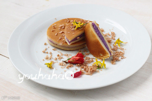 6. 取煎好的圆饼,抹上馅料,2片合起来即可。