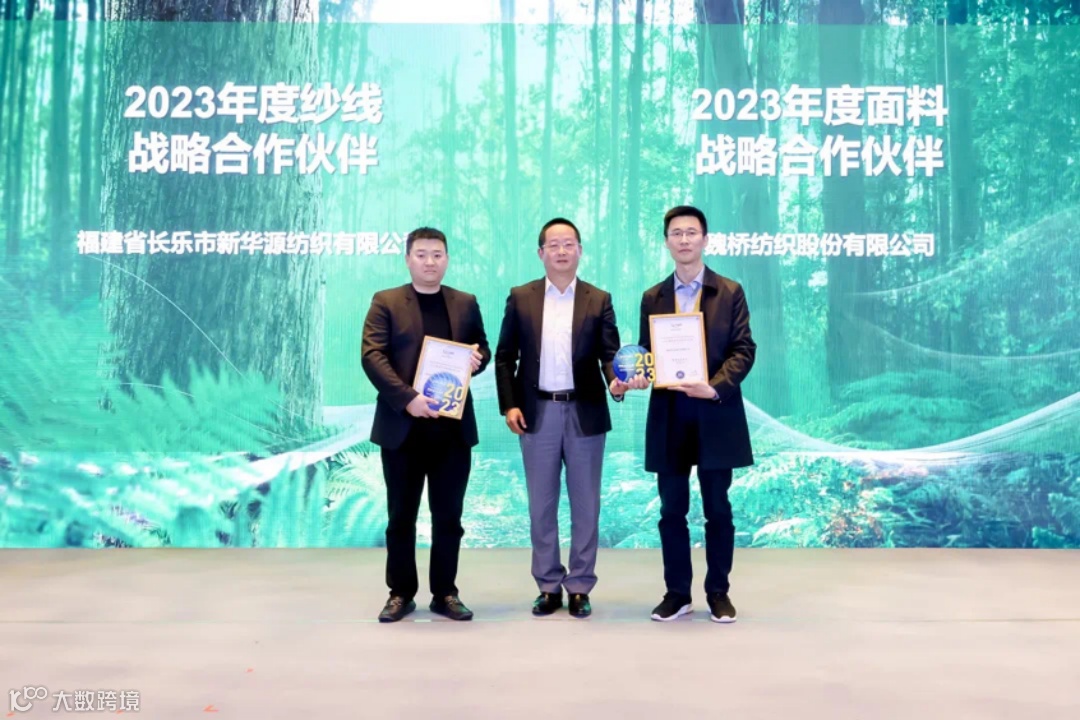 ▲ 莱赛尔2023年度面料战略合作伙伴(图中右边):
