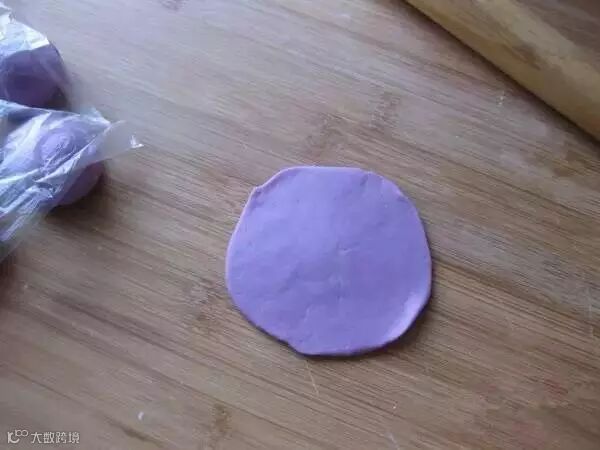 松弛好后去一个小面团,擀成圆皮。