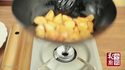 ▲地瓜放进去之后,快速的翻炒几下,就要出锅了。