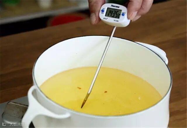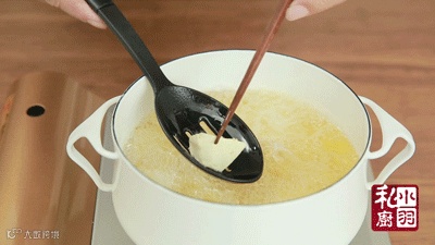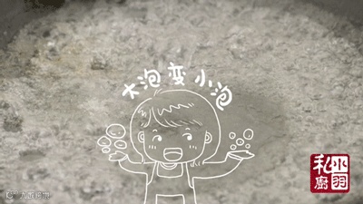 ▲一开始糖浆会冒大泡,然后会渐渐变成这种小泡,这时可以用筷子稍微搅一搅。