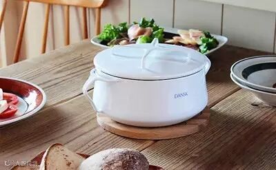 ▲这口锅是一款搪瓷锅,复古风格,锅盖可以直接当锅垫用。