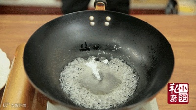 ▲然后就不要动了,用小火,等着糖慢慢融化。
