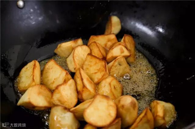 ▲拔丝地瓜这道菜,重点就在于怎么把糖熬到刚刚合适的程度。