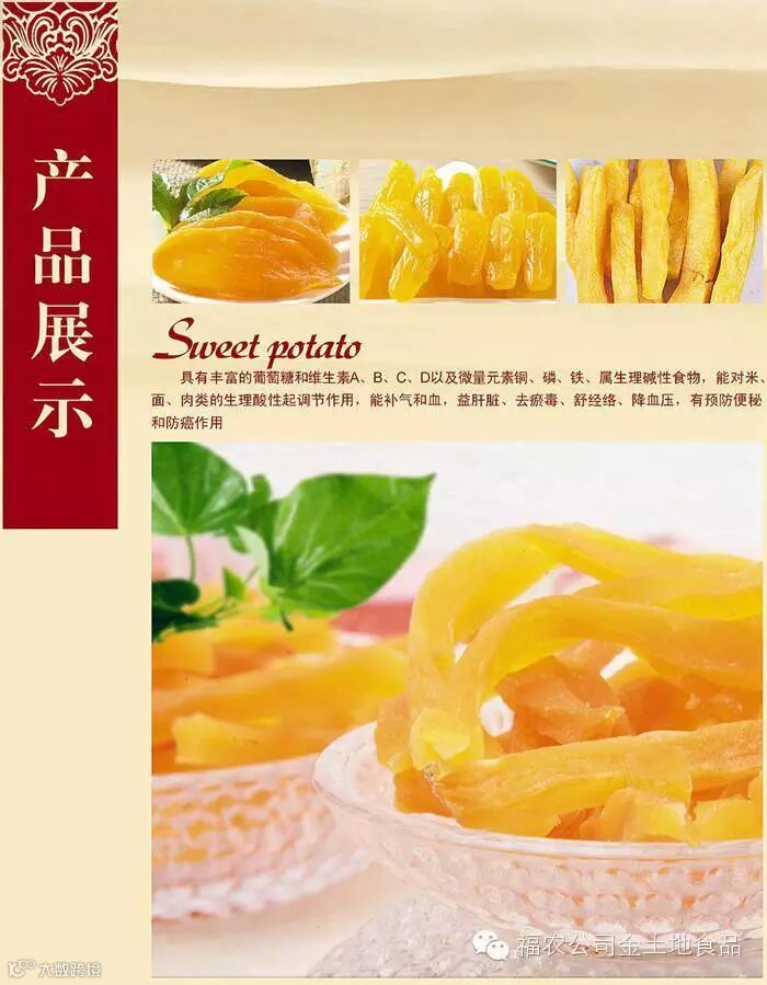 连城县福农食品有限公司成立于2006年,其前身是成立于1996年的连城县金土地食品厂,是一家专业从事甘薯制品研发、生产及销售业务的股份制民营企业。公司总部位于连城县莲峰镇江坊红心食品加工园区内,注册资本1000万元,现有员工840余人,6.7万平方米的加工厂区,总建筑面积4.8万平方米,具备年加工鲜地瓜3.9万吨的生产能力,可带动1.56万亩地瓜种植面积。