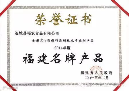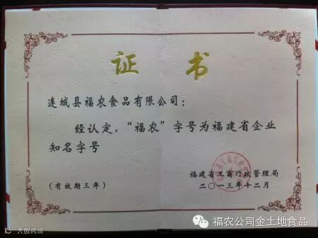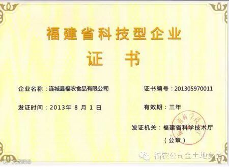 连城县福农食品有限公司所获荣誉资质