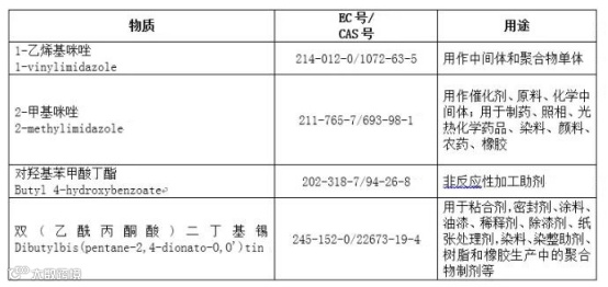 新增四项SVHC候选物质见下表: