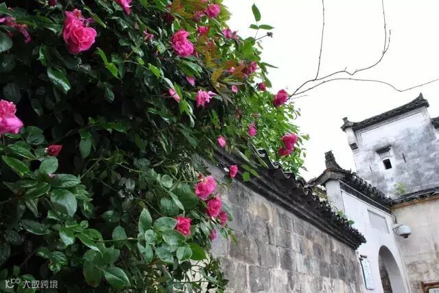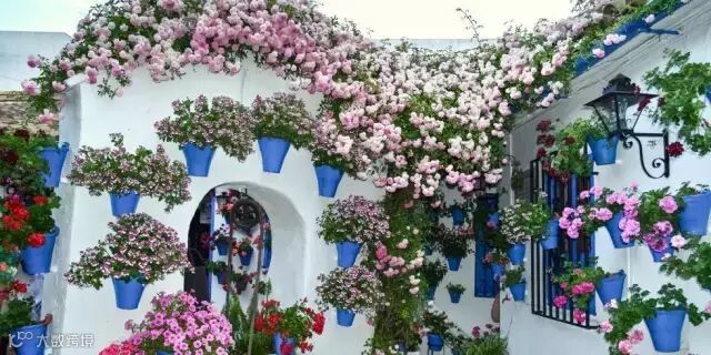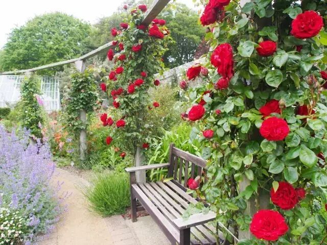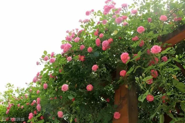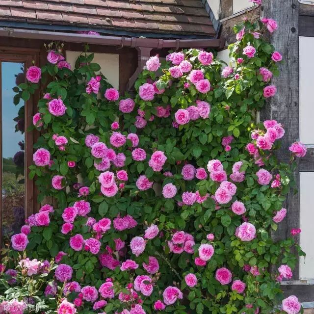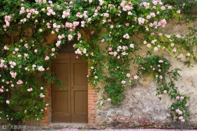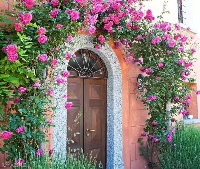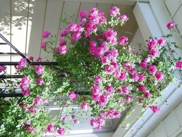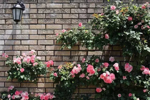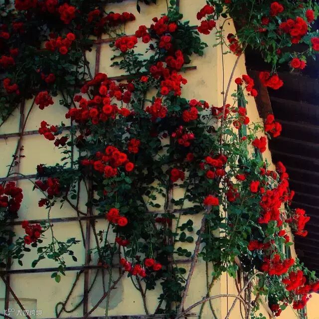 让玫瑰沿着墙壁、花架,