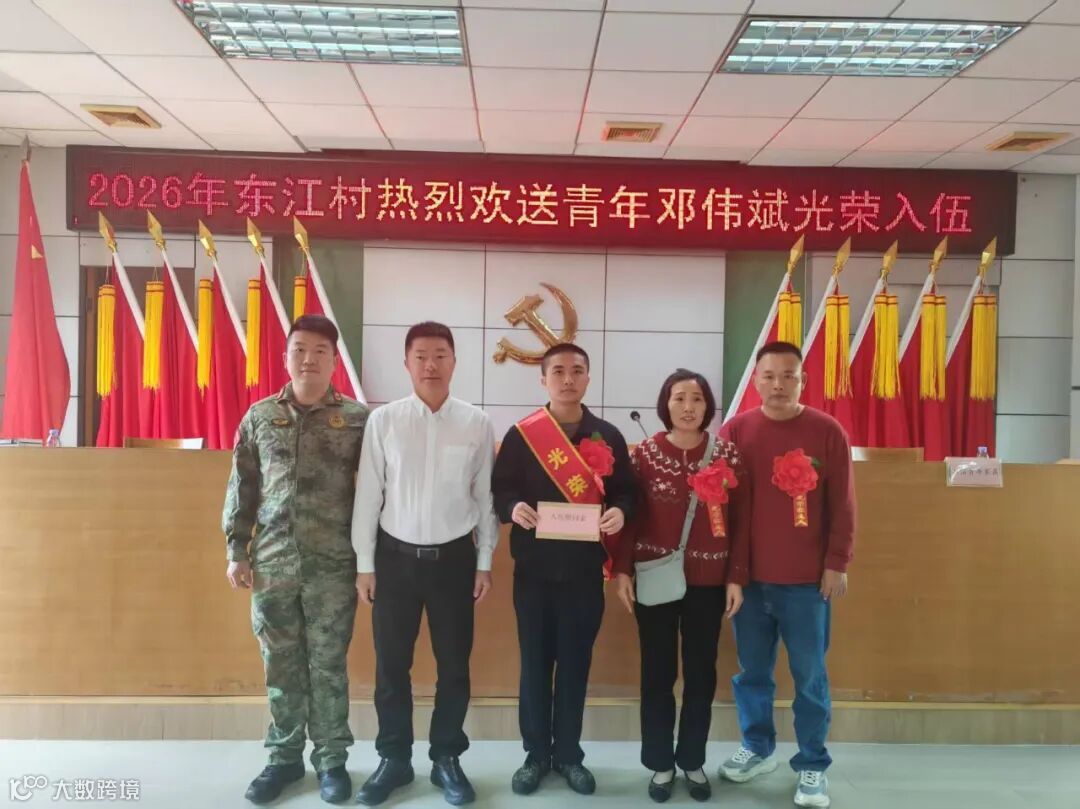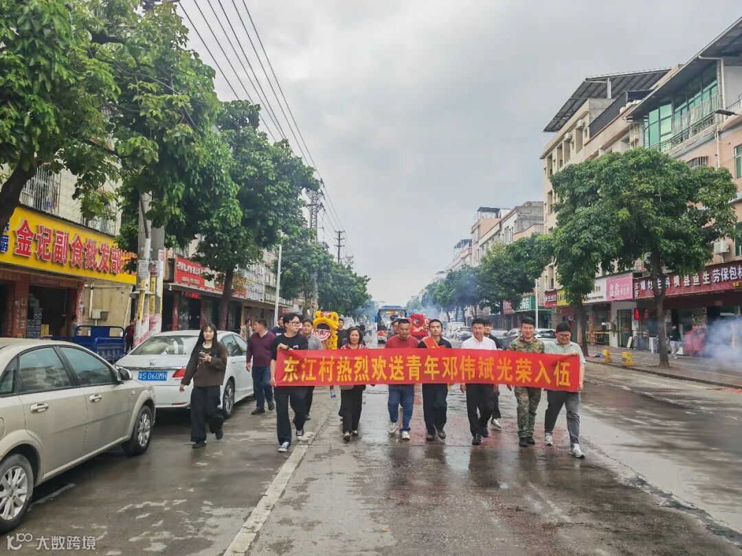 在东江村“两委”干部、家属朋友及东江麒麟醒狮团的共同欢送下,东江村入伍青年邓伟斌英姿飒爽、意气风发,踏上保家卫国的人生新征程。