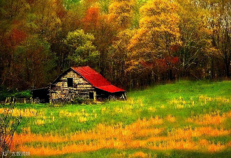 秋色——雨侵坏瓮新苔绿,秋入横林数叶红。