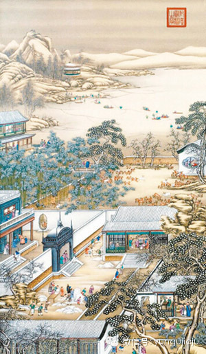 《雍正十二月令圆明园行乐图》之腊月赏雪(原图) |
