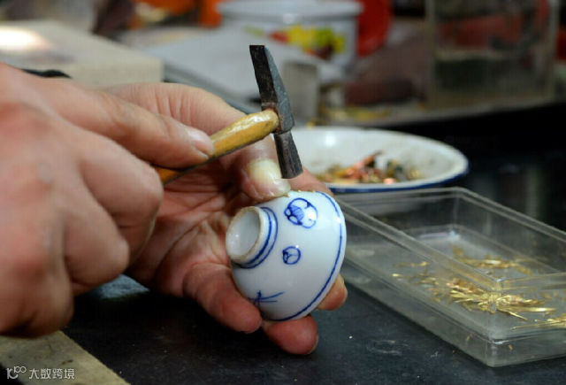真不敢相信一堆破瓷片经过修补能恢复成一个完好的茶杯,而且滴水不漏,还多了几份装饰韵味。这是玩家曹庆励给我们展现的手工绝活——锔瓷。