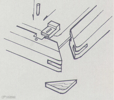 楔是一种-头宽厚,一头窄薄的三角型木片,将其打入榫卯之间,使二者结合严密,榫卯结合时,榫的尺寸要小于眼,二者之间的缝隙则须由挤楔备严,以使之坚固。挤楔兼有调整部件相关位置的作用。