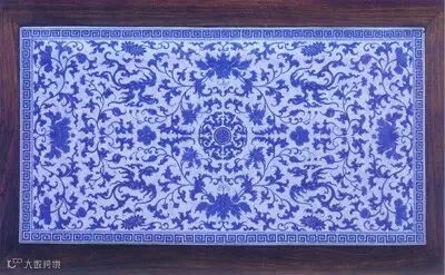 红木炕桌上的青花镶面 清 嘉庆